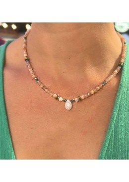 Collier en véritables Pierre de Soleil, Apatite et Goutte en Pierre de Lune.