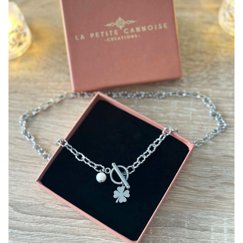 Le Collier Trèfle & Perle est une création lumineuse et symbolique signée La Petite Cannoise.