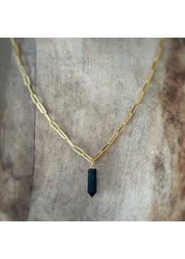 Collier pour Homme en Acier Inoxydable et pendentif en véritable Onyx Noir.