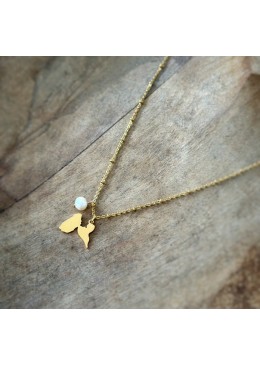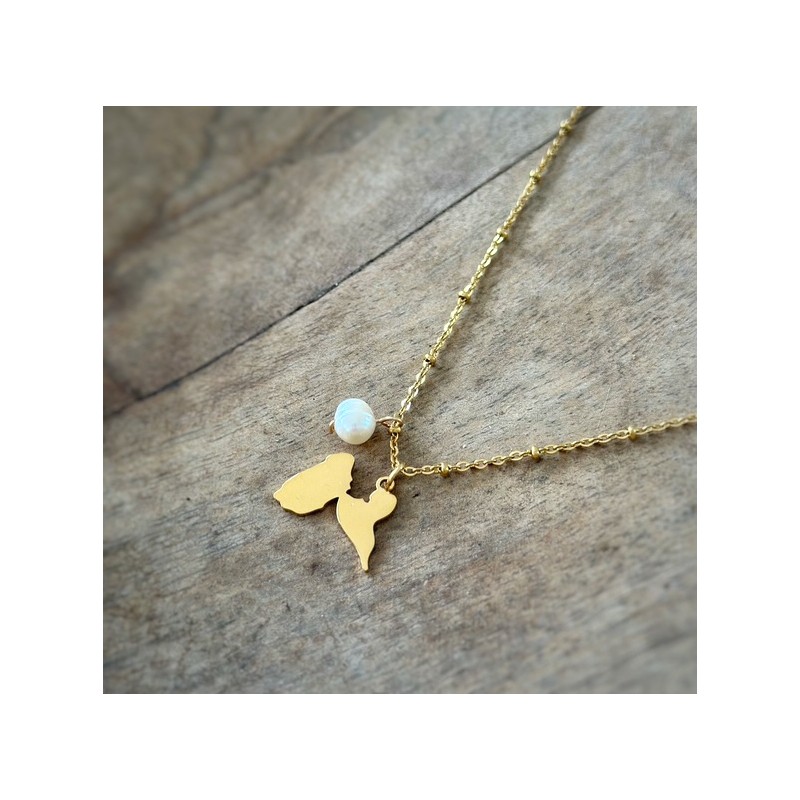 Collier en Acier Inoxydable chaîne à boules et pendentif Guadeloupe avec perle d'eau douce naturelle.